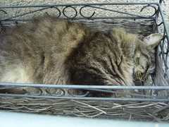 ガーデニングとかで、植木鉢を入れたりするラック?の中で寝ています…。