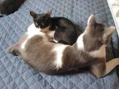 白黒たんはいつもパパンと一緒に寝ていまつ。