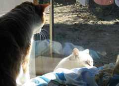 ←窓辺によそのおうちの猫タンが遊びにきました。