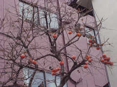 さっき、都内某所で鳥がスズナリになってる柿の木を発見。