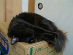 ねむさんです。押入れからはみ出たダンボールがお気に入り。