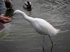 上とおなじ公園で、白鷺に餌付けしてる人がいました。
