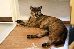 コチャよ、熱中症の予防になるから、ひんやりボードに乗ってくれんかの?