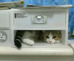 引き出しをとりはずしてみたところ、そこにもぐりこみました。