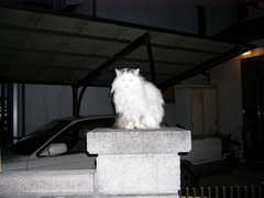 明石の浜に遊びに行ったとき偶然見かけた野良のフサねこ.