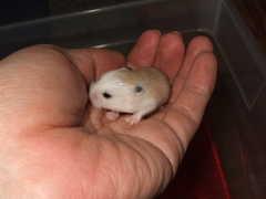みずえさん パパンもホワイトフェイスです。厳密に言うとホワイトフェイスには遺伝が優性と劣性の2種類が居て、パパンもママンも劣性のタイプ。だから、仔ハムも全部ホワイトフェイスになるんですよ。