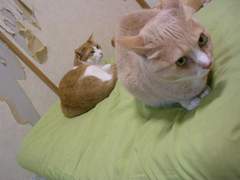 後ろのフスマのアートは、この二匹(主にチサト)がやりました。