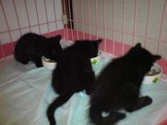ぶきちです。 今年は当たり年かもしれません。 黒3兄妹を、拾いました。 とりあえず元気そうです。 お腹が空いていたらしく、一心不乱にゴハン食べてます。 ぷちすけの事があったので、とりあえず仮名を付けました。 チビ・クロ・サンボにします。