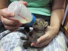 「しゃー!」と一応威嚇してますが、おチビがポカ~ンとした顔してるので、
