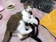 母猫と一緒にいるせいか懐かないですね