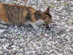 旅行中止したのは母猫が出入りできなくなるからです。元の物置にいてくれたなら戸を少し開けたままにできたんだけど、母猫がおばあちゃんの部屋を出入りするのは庭側のガラス戸なんで、開けっ放しにはできない。まあしょうがないですよね。おばあちゃん動物好きだから喜んでるし。
