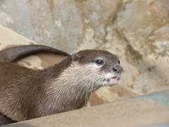 よく行く動物園のコツメカワウソさんは、静かなときに人が通ると
