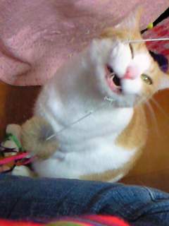 じゃらしで遊んであげると、ヒモ部分をシャクシャクして噛みちぎってしまいます(^^;)