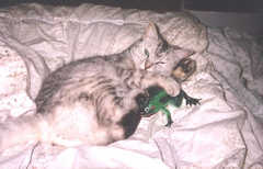ダ○ソーで買ってきたカエルがお気に入りです。