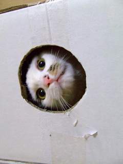 箱にあけた穴から顔やら、手を出すのがブームらしい。
