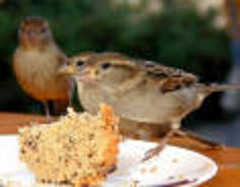 「お若いの、ソレ、お若いの」といいながら、パンを千切っては投げていました。