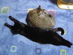 真新しいホットカーペットの上で、くつろぐシマ子と伸びるクマ子でつw