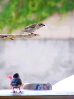 この窓は私のデスクからは直接見えないので、ミラーを通して撮影してます、当然、雀さんも、ミラーを通して私のことをしっかり見てます。