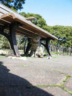 ベンチの下でマターリするシマネコさん。多分上のコと同じコと思われ。