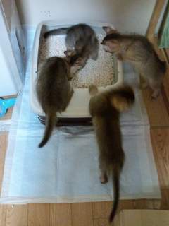 トイレ、子猫用は気が向いた(大人用が混雑してるときだけ?)ときにしか使わなくなりました。