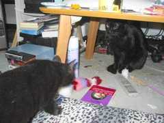 コネコタソには部屋を片付ける間浴室にいてもらってたんですが、今日の夜初めて浴室の外に出しますた。コネコタソは比較的早く部屋に慣れたっぽいんですが…やっぱりというからっきーがコネコタソを見てフリーズアーンドウゥ~唸りをはじめてしまいますた(唸るだけでなくちょっとだけフーもしてますた)。幸い危害は加えられなかったものの、双方の事を考えてまたコネコタソには引っ込んでもらいますた。