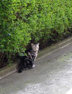 日暮里→根津の途中で会いました。アメショーの外猫さん?