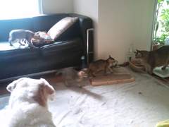 はじめは姿を見ただけでラニが逃げ回っていたのですが、私とラルとでなだめていると、同じ部屋にいても大丈夫になってきました。