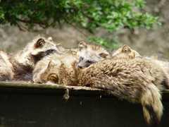 まったくやる気のないホンドタヌキ達@多摩動物公園