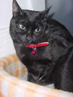というわけで、らっきーに100円ショップから買ってきた首輪をつけてみますた。本当はサッチにつけてみようかと買ってきたモノだったんですがつけさせてくれなくて、結局ベッドでマターリしてたらっきーが犠牲に。