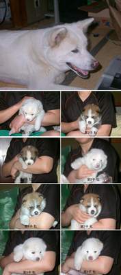 白の4匹の内、第8子を除き耳、頭部の辺りが少し色づいたようです。まだ気になる程ではありませんが・・・。