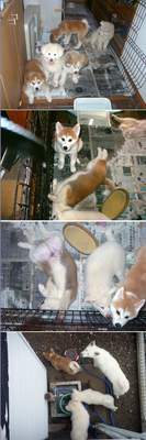 第2子が仰向け開き状態、第9子はバリケードをくわえて睡眠中。ボス 一人だけ覚醒