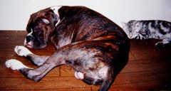 猫が大好きでいっつもくっついたりくっつかれたりしてますた、これでも仔犬。