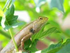 ゲージではないのですが、庭のパパイヤにて涼んでました(?)
