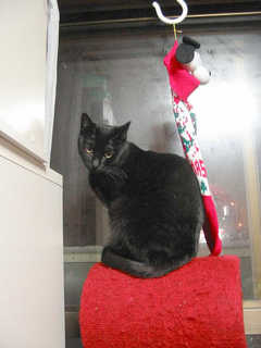 キャットタワーの上でおすまし。こういうときのらっきーが一番好きでつ。
