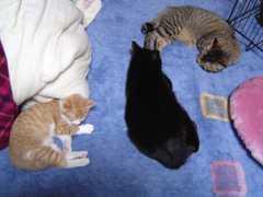 ストーブの前で眠る3匹・・・寝てる時だけは仲良し。