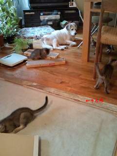そういえば、11年前の今頃ラルが2ヶ月でやってきたとき、人間用のベッド破壊、壁紙を畳一枚分ぐらいはがす、ブーツまっぷたつなどやらかしてくれて、犬ってこんなに破壊力があるんだと思ったことを思い出しました。それに比べたら子猫4匹が暴れるなんてかわいらしいもの...