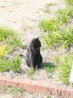 花壇でひなたぼっこしてた黒いコ。この後も黒いコに何匹か出会いますた。
