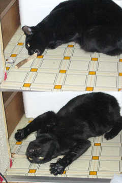 マタタビで一時ノックダウンならっきー…でも効果持続せずですた。