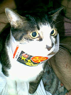 納豆マフラー?納豆ラベル首輪をつけてみました