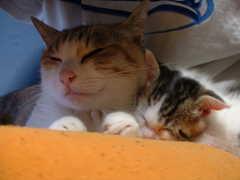 二人して膝の上で寝られると、プラモ作れないんですが、、、