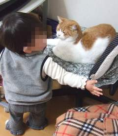このあと椅子をくるくる回されてました(汗)。助さんたちは少ーし相手してくれますが、途中でつきあいきれなくなって逃げます(一応仲良し…?)。