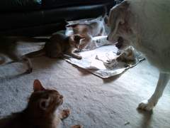 キャットタワーで準備運動をしたら、次は最近日課になっているラニトイレグチャグチャ遊びです。