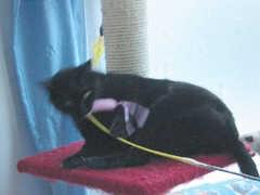 超ロング改造ねこじゃらし(自作)との格闘。机のイスからでもかまってやれるのでナイスなアイテムです。