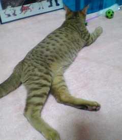 遊びつかれてぐったりなオシキャットのキンタローです。