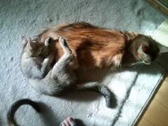子猫たちは母にこんなことばかりするので、さすがのロナもええかげんにせえの教育的指導です。