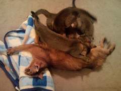 ロナがゴロンゴロンしていると、子猫たちが寄ってきて一斉におっぱいを飲み始めました。