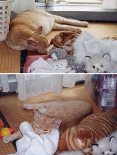 上:馴染みの子が ぬいぐるみに紛れて