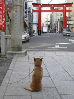 飼い主に「待て」と言われたのか、このポーズでずっと参道を見詰めていた犬