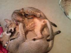 ロナ、ラニのストーカーと化しています...ラニもだいぶストレスがたまってるかなあと思って様子を見ると仰向けになって伸びて寝ていたりするので、よくわかりません。
