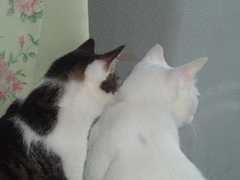 そんなに仲良くない2匹ですが、たまにこんなお揃いのポーズします。